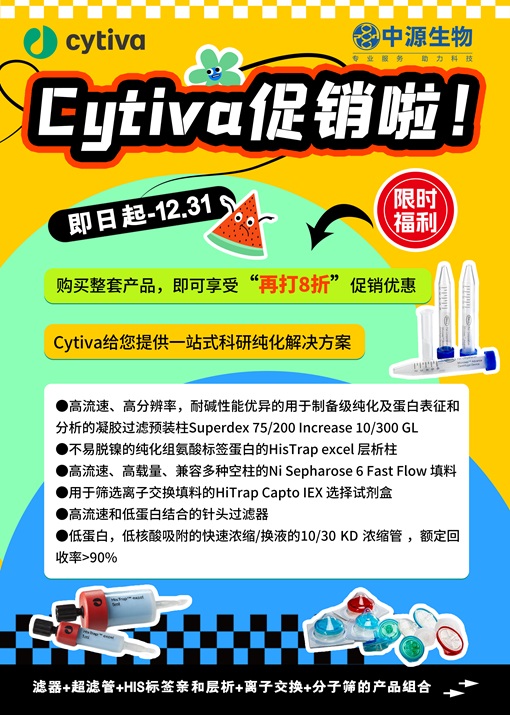 Cytiva给您提供一站式科研纯化解决方案,优选 滤器+超滤管+His标签亲和层析+离子交换+分子筛的产品组合,促销啦!2024-09-02 14:37:00.0