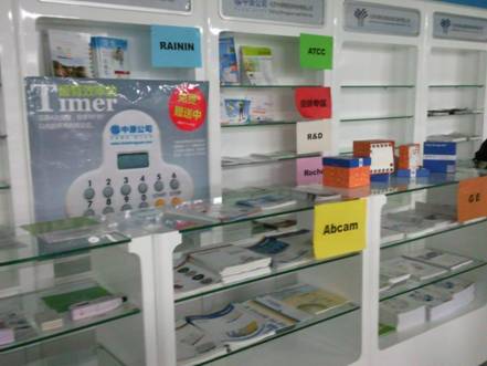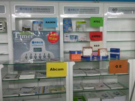 2012年6月底,首都医科大学设备与实验室管理处的物资供应中心试剂、耗材和小型设备供应采购平台开始启用。中原公司作为首都医科大学在2012年入围的企业,在供应中心拥有一个展台,用于介绍我们的产品及服务。在这个展台上,我们放置了我公司代理产品ATCC、GE、Abcam、R&D、RAININ等相应资料及宣传画册,并分门别类的将我们的资料分类清楚,以便于客户能跟清晰的去了解我们的产品。