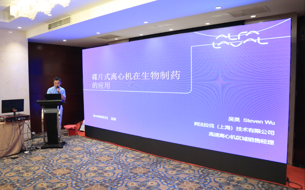 Alfa Laval公司区域销售经理吴昊对“蝶式离心机在生物制药的应用”进行了主题演讲