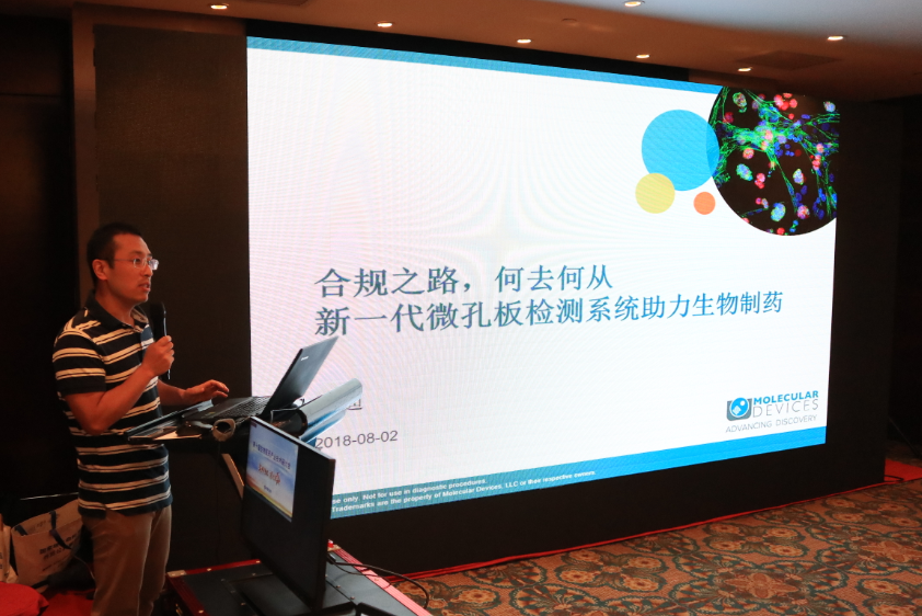 MD公司酶标仪产品线经理尹迪对“合规之路,何去何从——新一代微孔板检测系统助力生物制药”进行了主题演讲