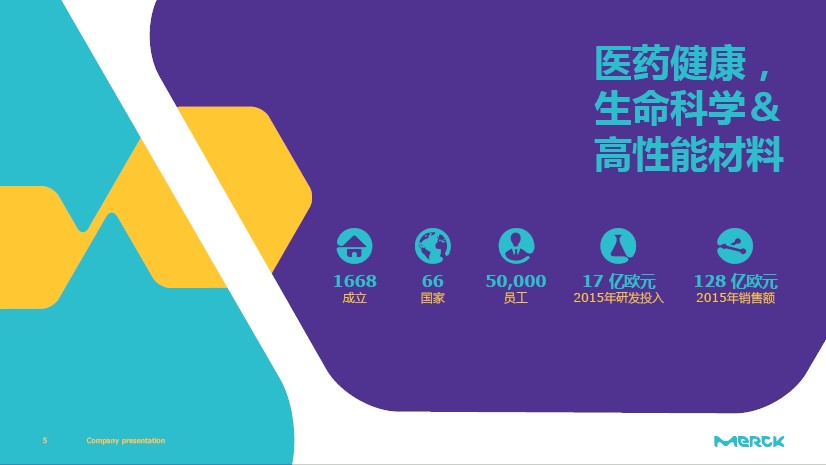默克集团(Merck KGaA)创建于1668年,拥有约350年历史,总部位于德国达姆施塔特市,该集团主要致力于创新型制药、生命科学以及前沿功能材料技术, 并以技术为驱动力,为患者和客户创造价值。