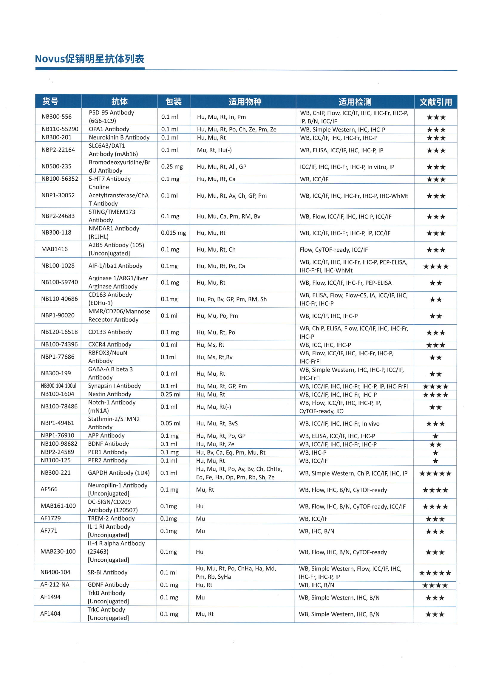 以下为我们推荐的研究星形胶质细胞抗体列表:
