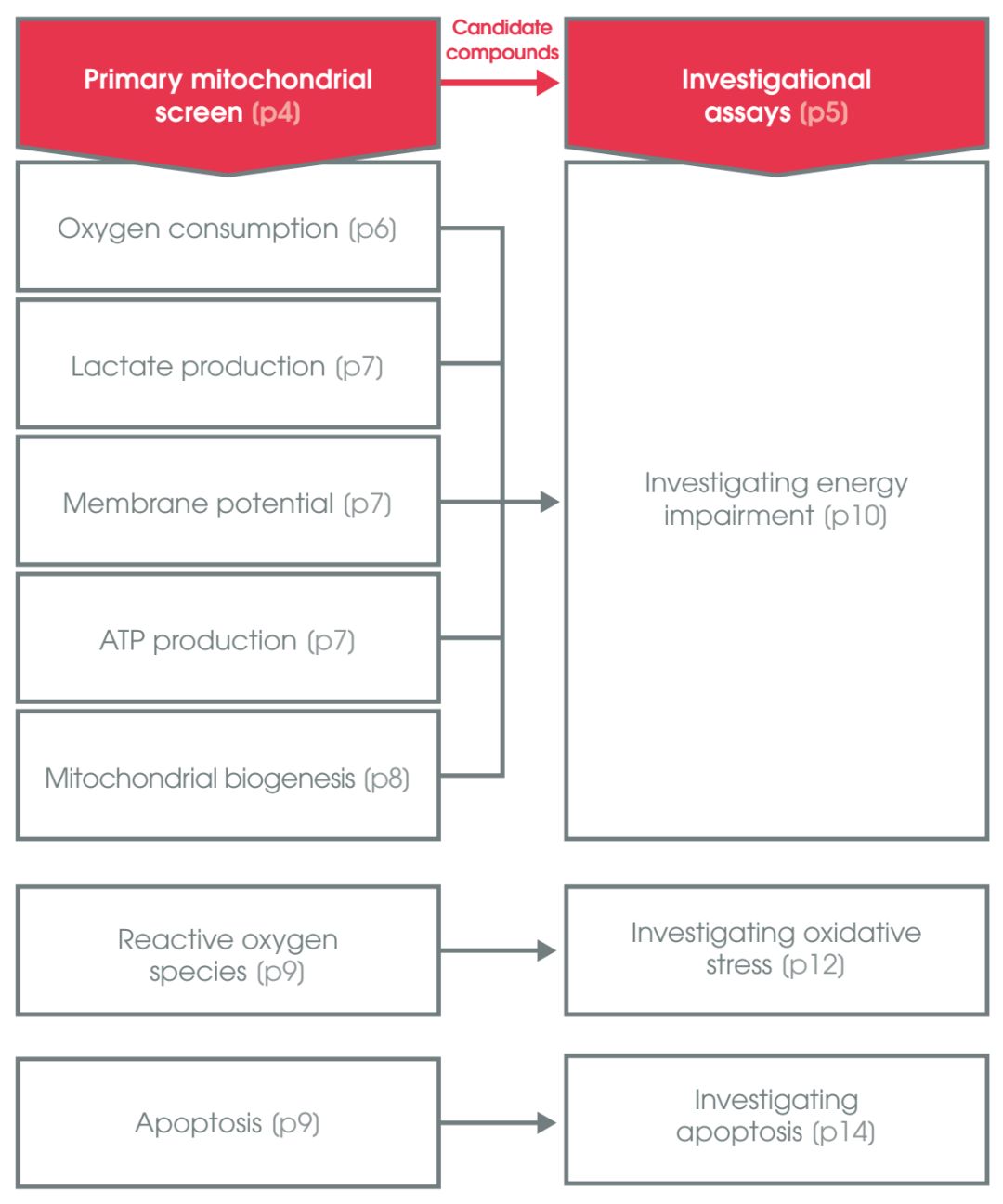 使用候选药物进行治疗后,可使用检测试剂盒对线粒体功能进行初步筛查。如果在体外筛查过程中证实了线粒体毒性,可以通过体外研究检测试剂盒或动物模型进一步研究其作用机理。