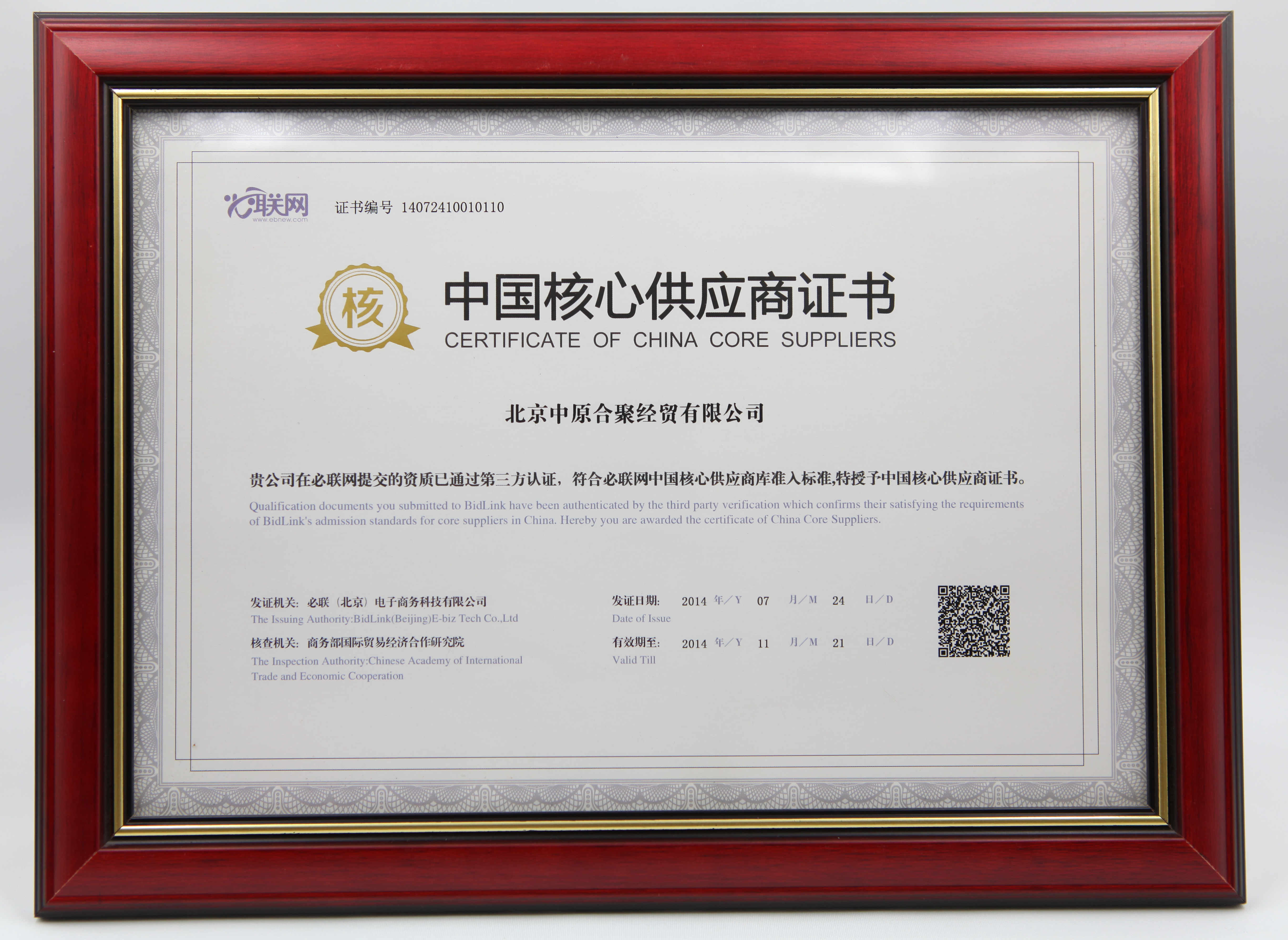 Certificate Of China Core Suppliers